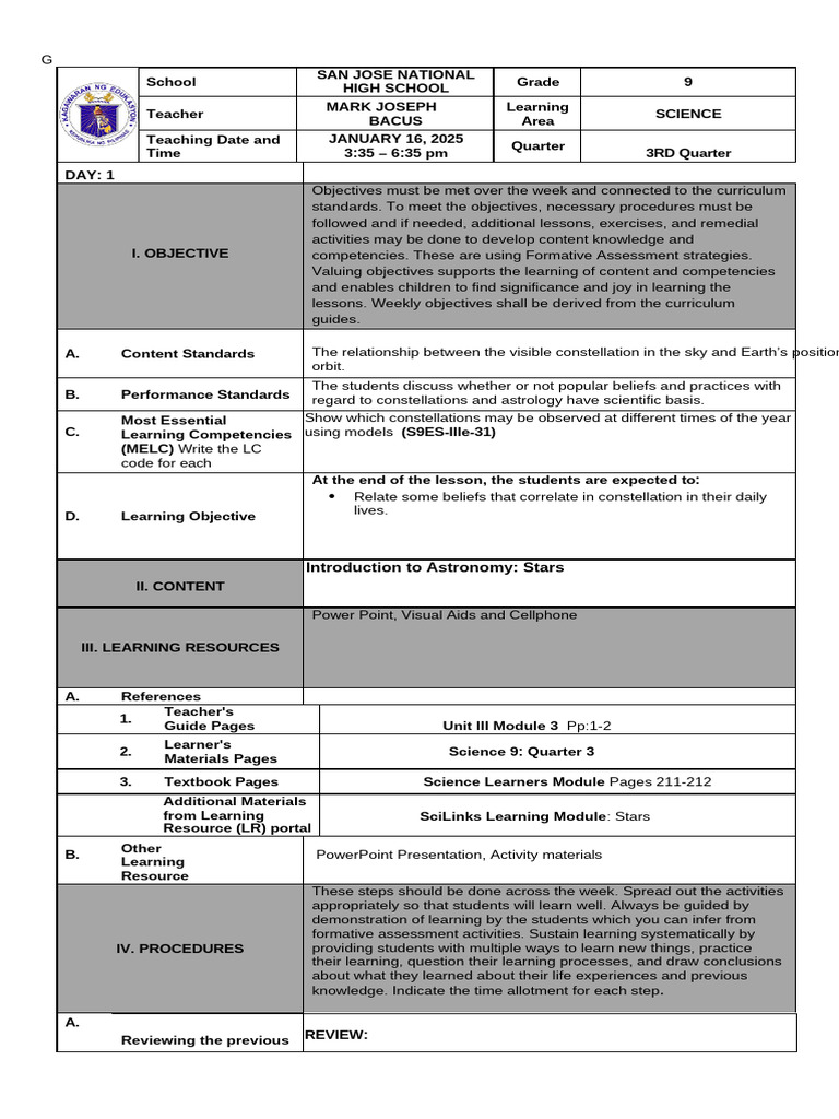 I. OBJECTIVE competencies. These are using Formative Assessment strategies.