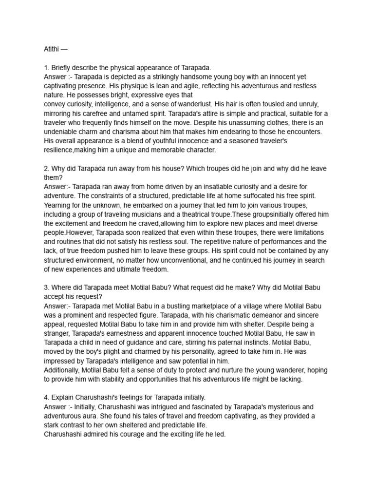 Answer:- If 1 were in Tarapada's place after staying for about two years in Motilal Babu's house,