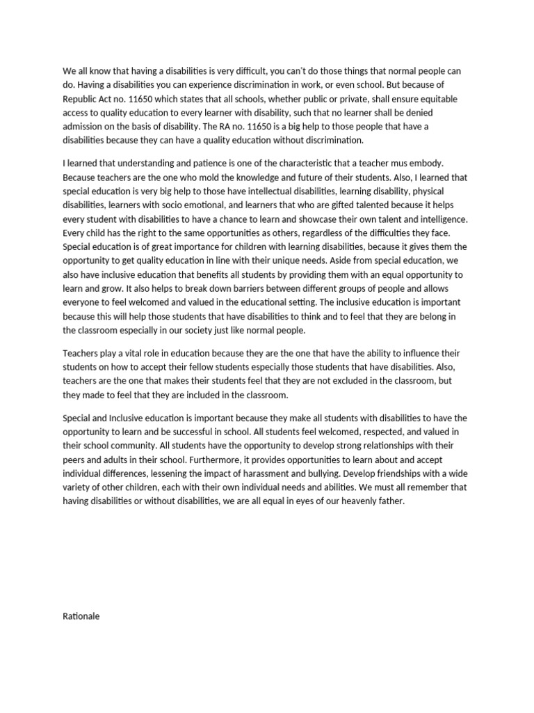 admission on the basis of disability. The RA no. 11650 is a big help to those people that have a