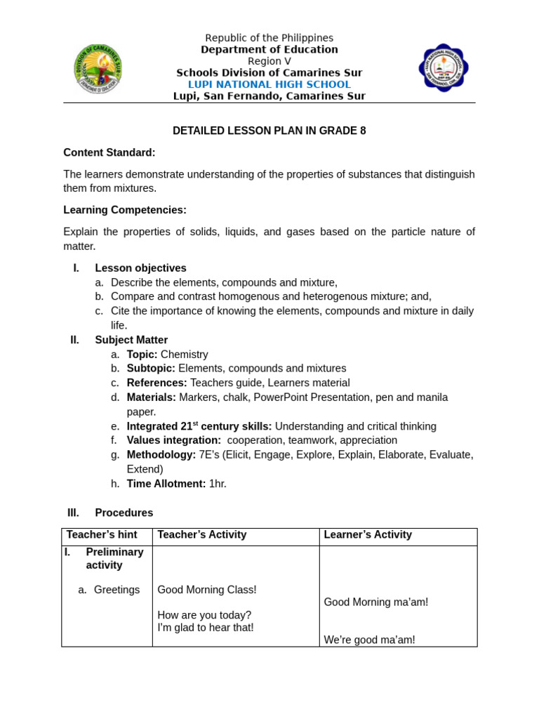 g. Methodology: 7E’s (Elicit, Engage, Explore, Explain, Elaborate, Evaluate,