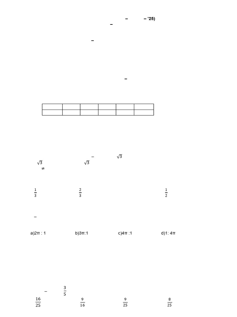 a)2π : 1 b)3π:1 c)4π :1 d)1: 4π