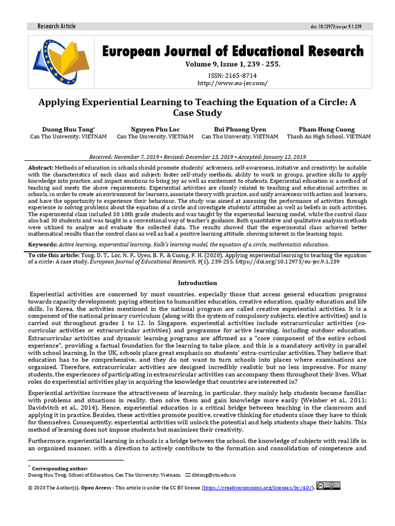 To cite this article: Tong, D. T., Loc, N. P., Uyen, B. P., & Cuong, P. H. (2020). Applying experiential learning to teaching the equation