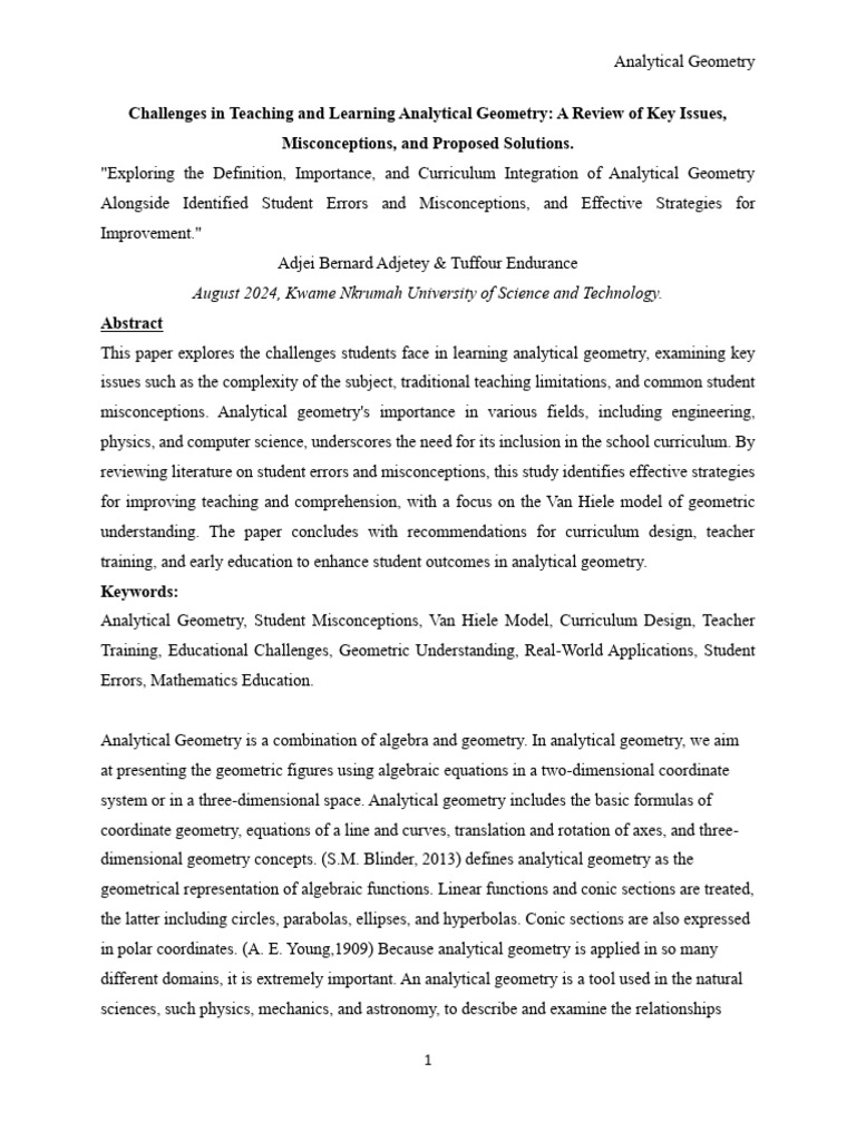 "Exploring the Definition, Importance, and Curriculum Integration of Analytical Geometry
