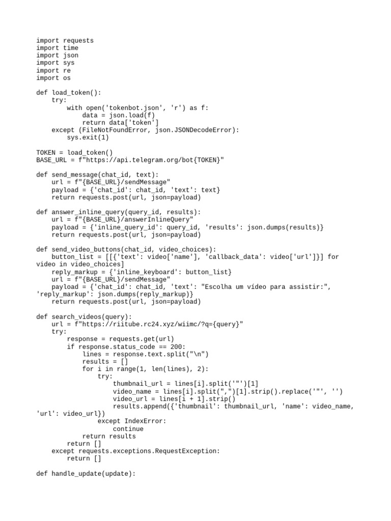 send_message(chat_id, "Nenhum vídeo encontrado.")
