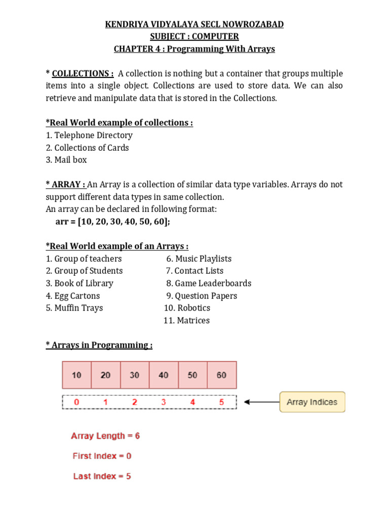* ARRAY : An Array is a collection of similar data type variables. Arrays do not