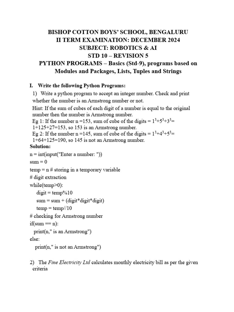 PYTHON PROGRAMS – Basics (Std-9), programs based on