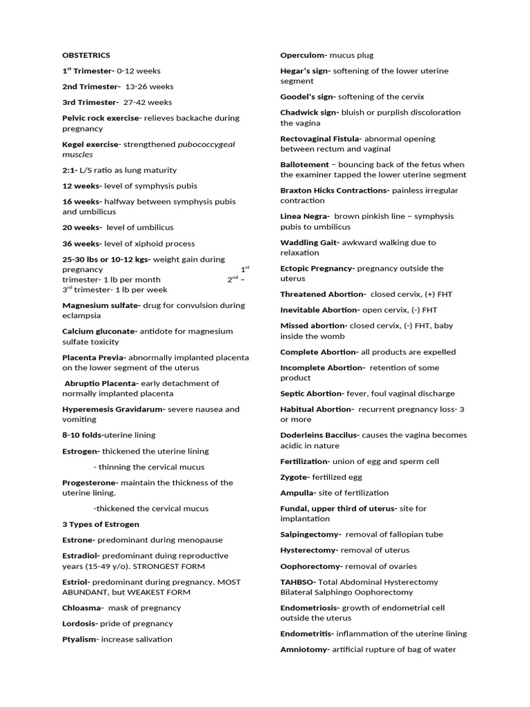 OBSTETRICS Operculom- mucus plug