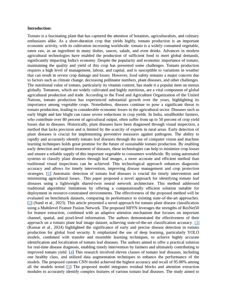 [2] (Sunil et al., 2023). This article presented a novel approach for tomato plant disease classification