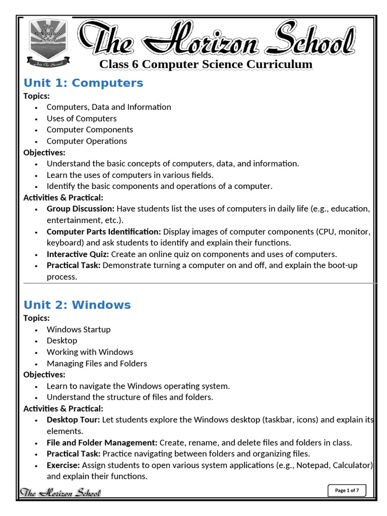 PRACTICAL ACTIVITIES FROM EVERY UNIT CS – 6