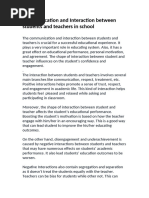 motivation, and overall well-being. A positive teacher-student relationship fosters a supportive learning environment where students feel valued
