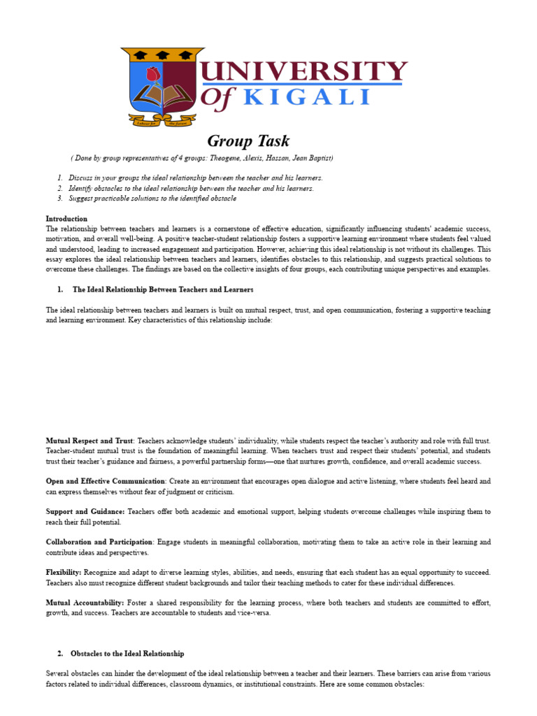 essay explores the ideal relationship between teachers and learners, identifies obstacles to this relationship, and suggests practical solutions to