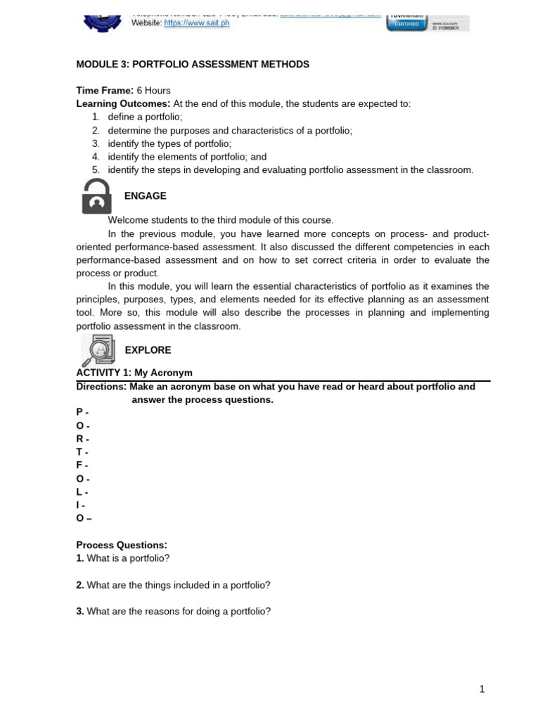 MODULE 3: PORTFOLIO ASSESSMENT METHODS