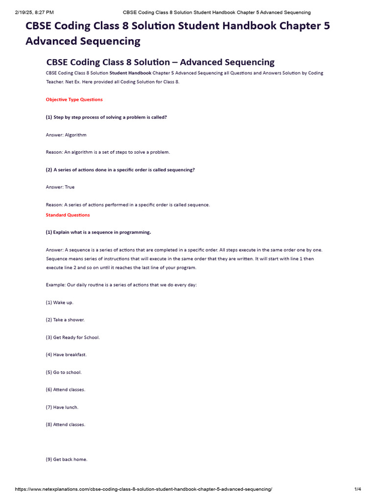 2/19/25, 8:27 PM CBSE Coding Class 8 Solution Student Handbook Chapter 5 Advanced Sequencing