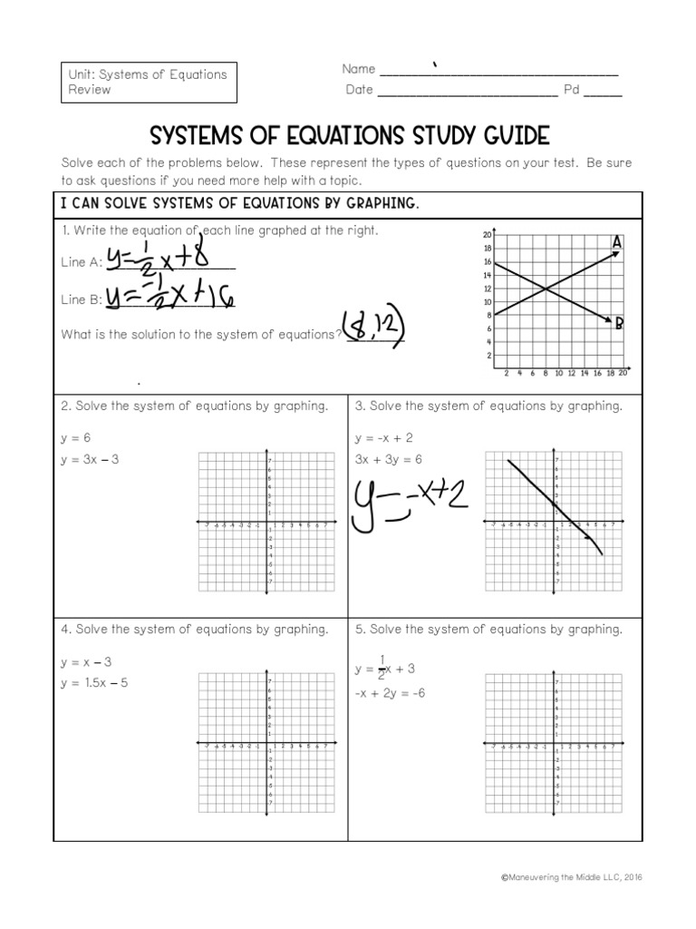 SYSTEMS OF EQUATIONS STUDY GUIDE