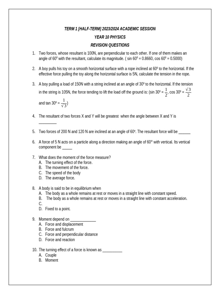 YEAR 10 PHYSICS