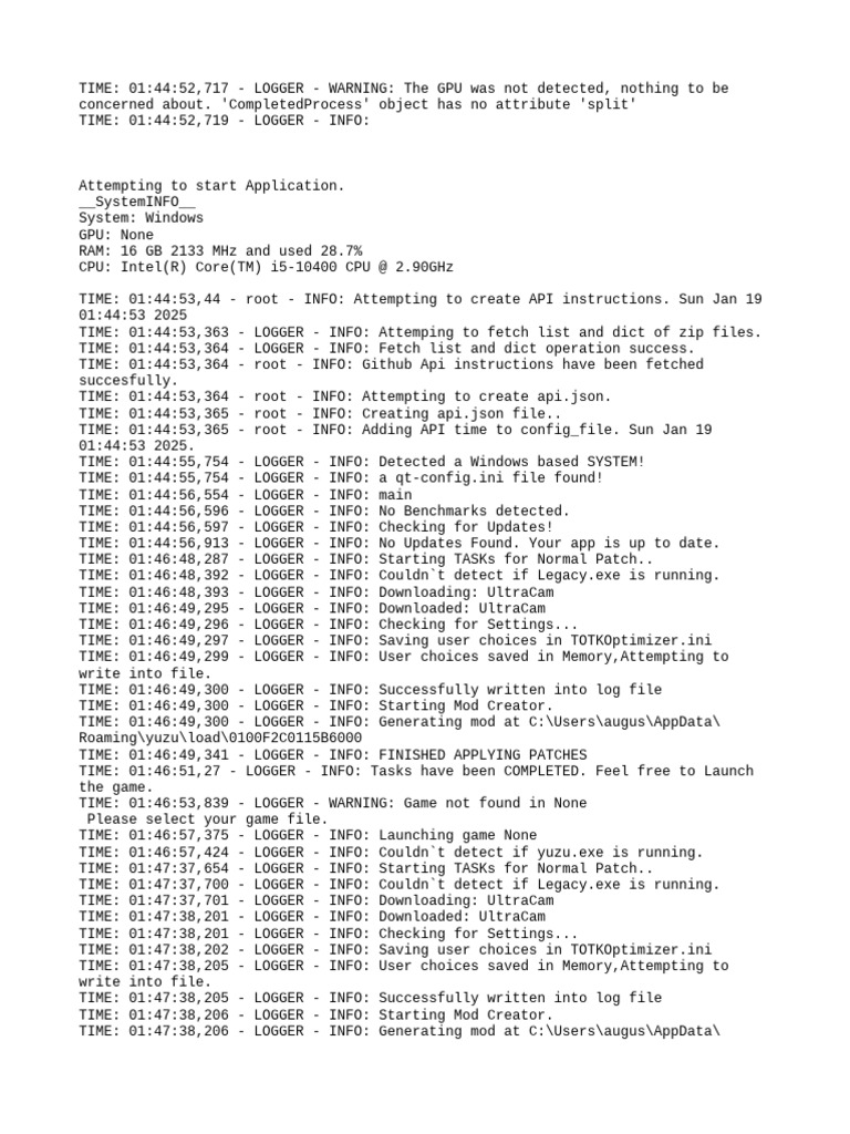TIME: 01:47:52,748 - LOGGER - INFO: Couldn`t detect if yuzu.exe is running.