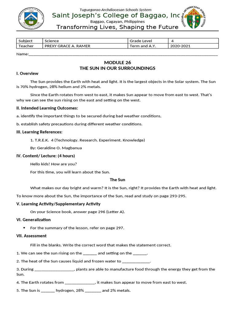 For this time, you will learn about the Sun.