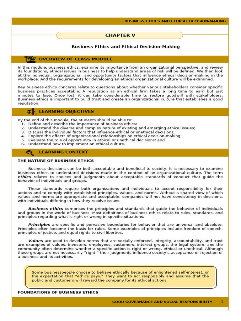 Business Ethics and Ethical Decision-Making