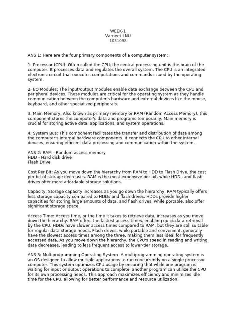 ANS 1: Here are the four primary components of a computer system:
