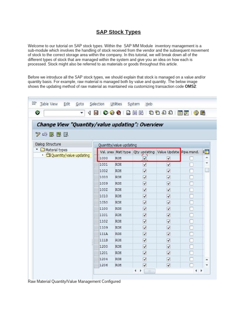 Before we introduce all the SAP stock types, we should explain that stock is managed on a value and/or
