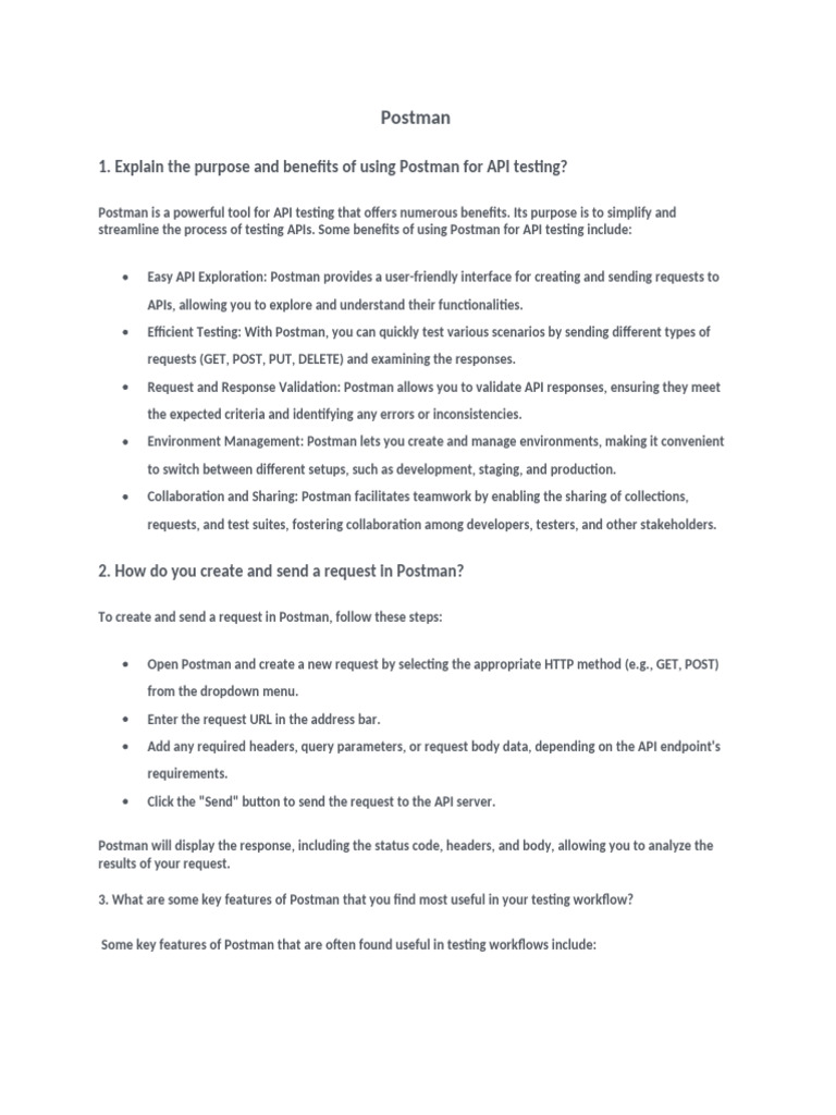 streamline the process of testing APIs. Some benefits of using Postman for API testing include: