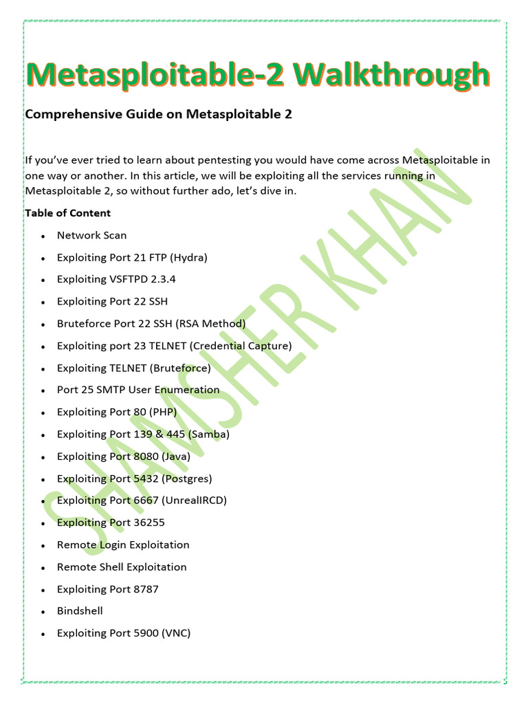 containing all the ways and means to exploit all the vulnerabilities of Metasploiable 2