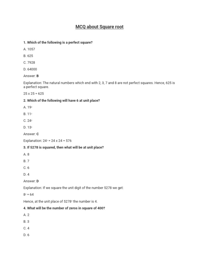 Explanation: The natural numbers which end with 2, 3, 7 and 8 are not perfect squares. Hence, 625 is