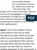 (1) James: Good day my fellow Student Council members! I would like to tell you about the project “Reach