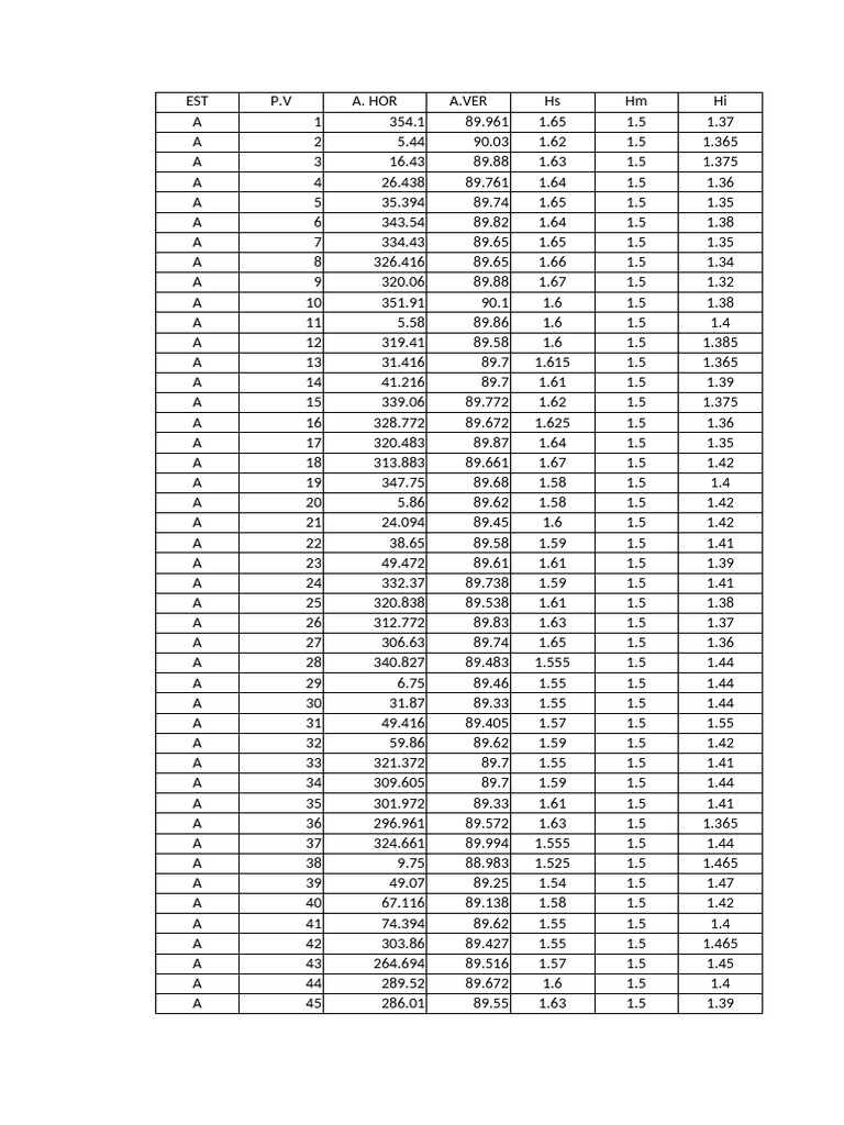 Hm Hi L(Hs-Hi) Distancia Desnivel Proy X Proy Y X
