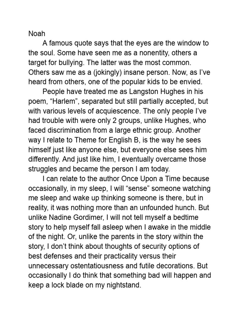 way I relate to Theme for English B, is the way he sees