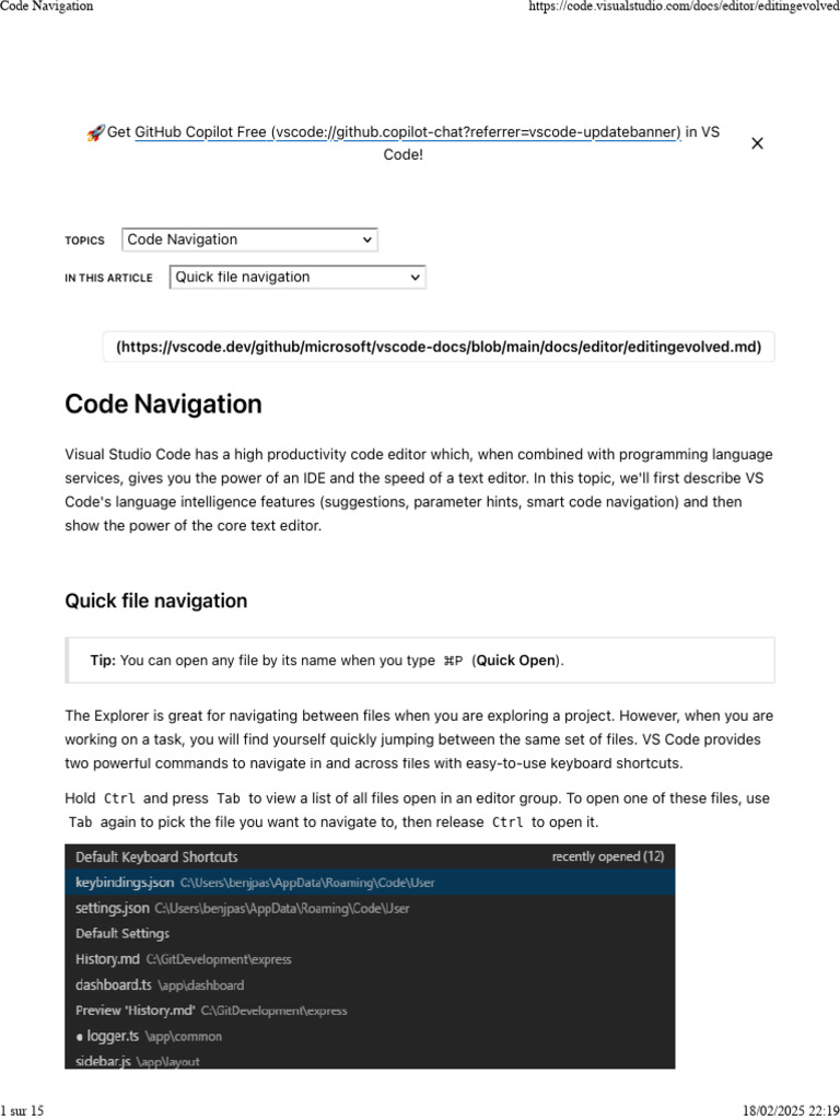 working on a task, you will find yourself quickly jumping between the same set of files. VS Code provides