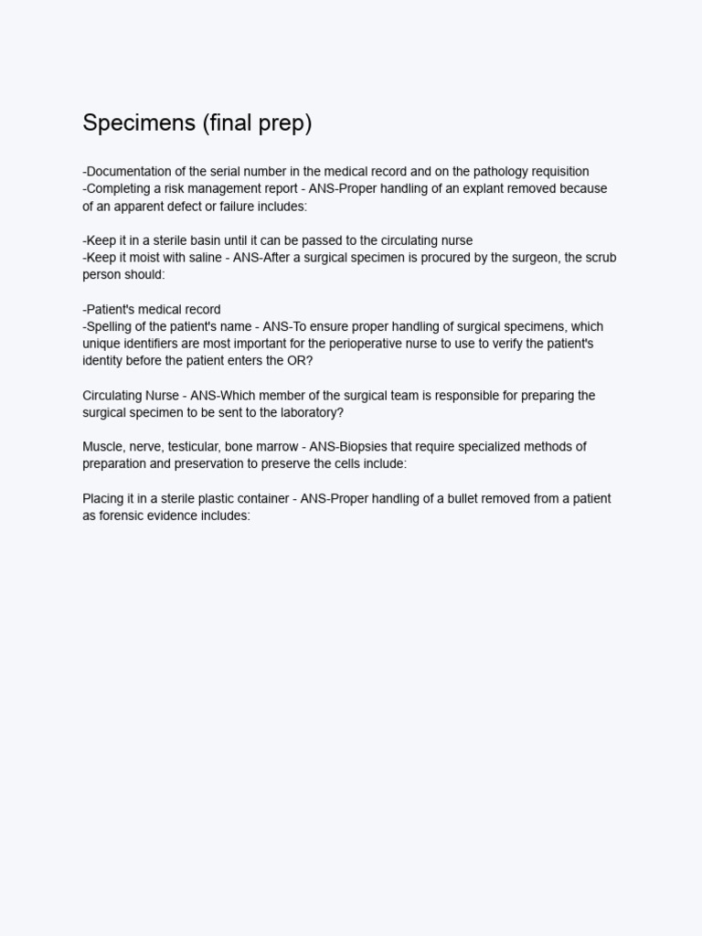 -Keep it moist with saline - ANS-After a surgical specimen is procured by the surgeon, the scrub