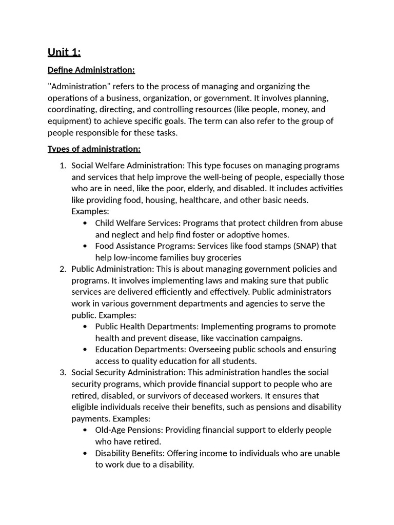 1. Social Welfare Administration: This type focuses on managing programs