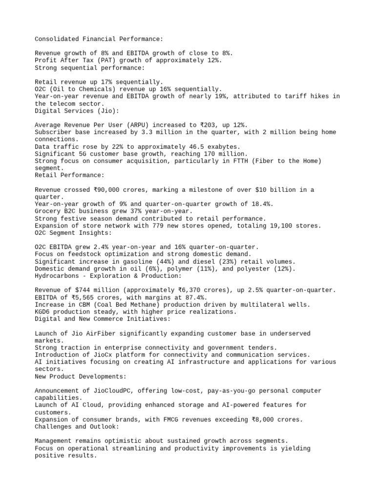 O2C EBITDA grew 2.4% year-on-year and 16% quarter-on-quarter.