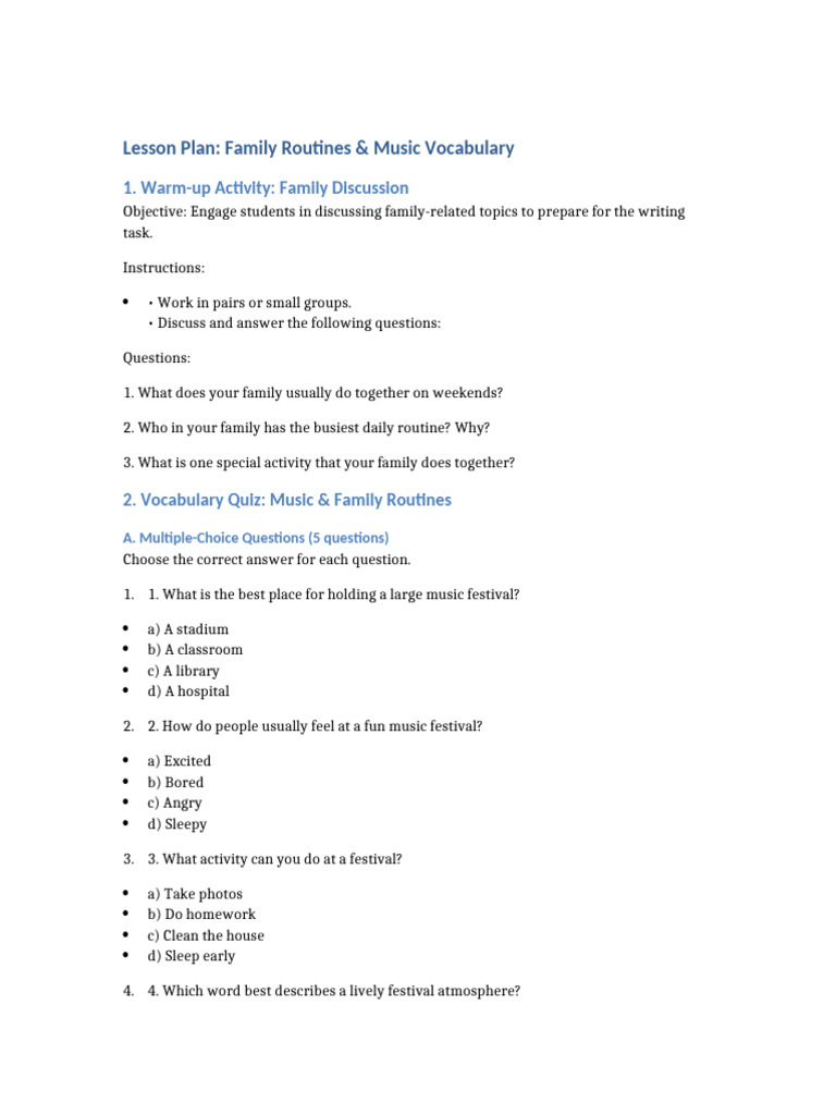 Write a short paragraph (100-150 words) about your family’s daily routine. Use vocabulary