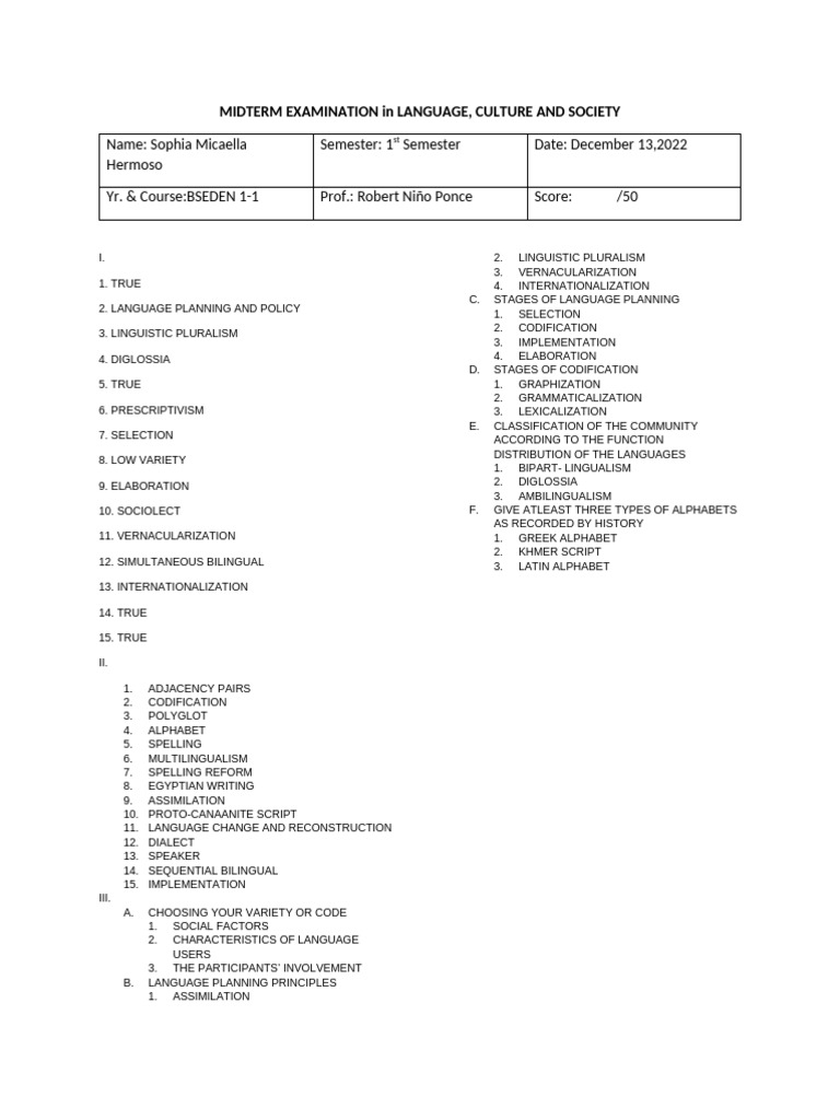 MIDTERM EXAMINATION in LANGUAGE, CULTURE AND SOCIETY