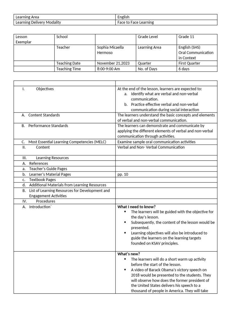 C. Most Essential Learning Competencies (MELC) Examine sample oral communication activities