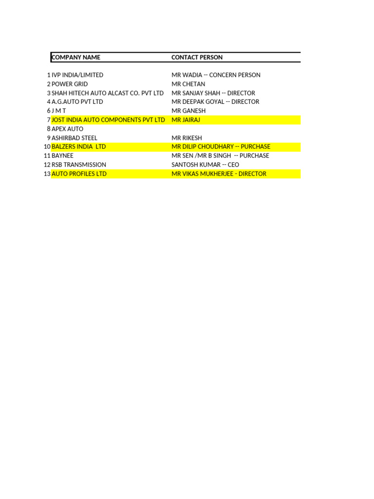7 JOST INDIA AUTO COMPONENTS PVT LTD MR JAIRAJ