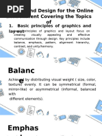 The basic principles of graphics and layout include balance, emphasis, movement, pattern, repetition and