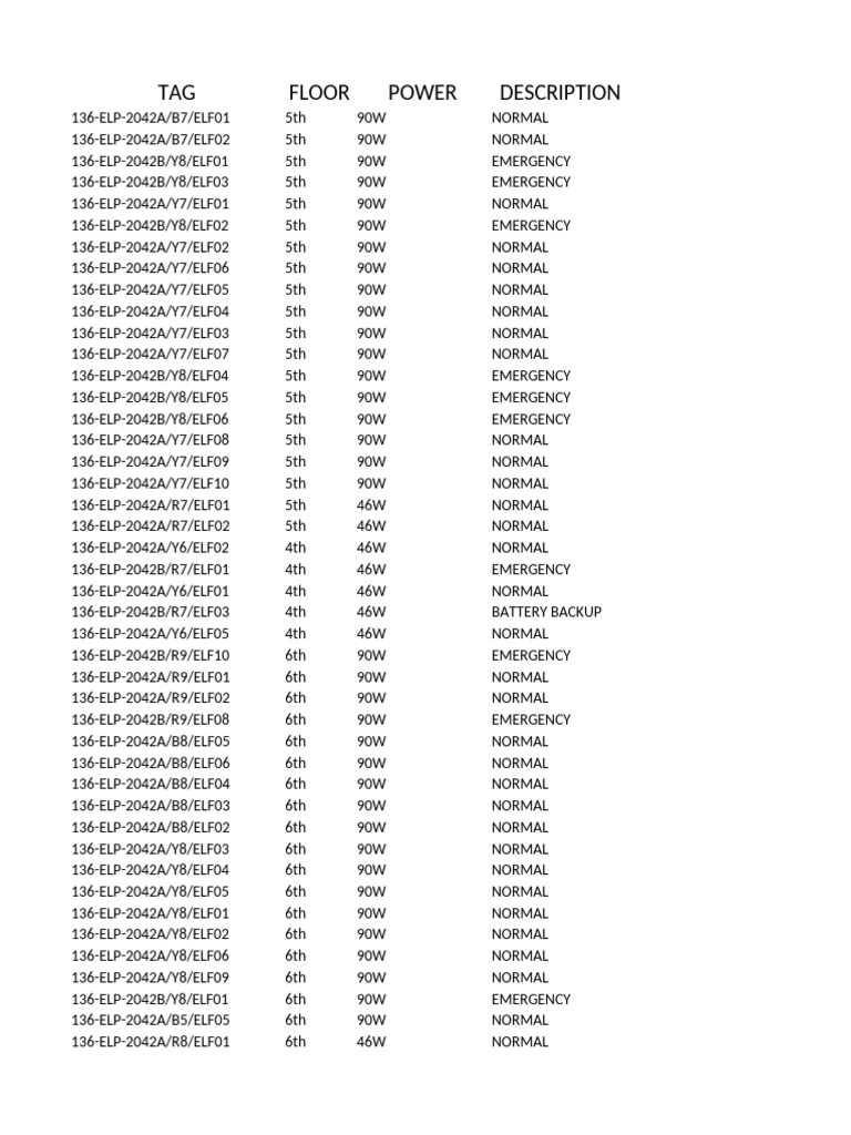 TAG FLOOR POWER DESCRIPTION