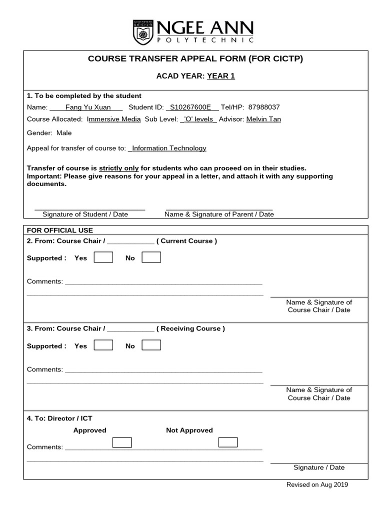 COURSE TRANSFER APPEAL FORM (FOR CICTP)