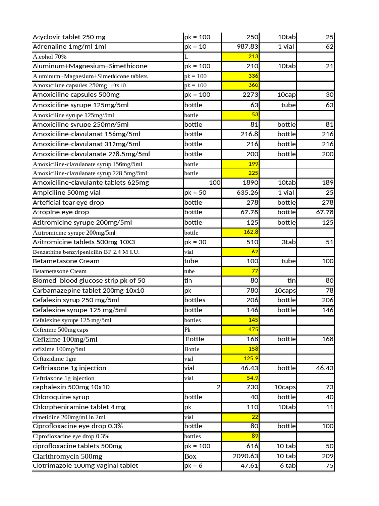 102 Paracetamol syrup 120mg/5ml bottle 53 bottle 53 68.9 70 79.5