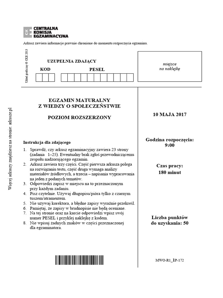 Wos 2017 Maj Matura Stara Rozszerzona