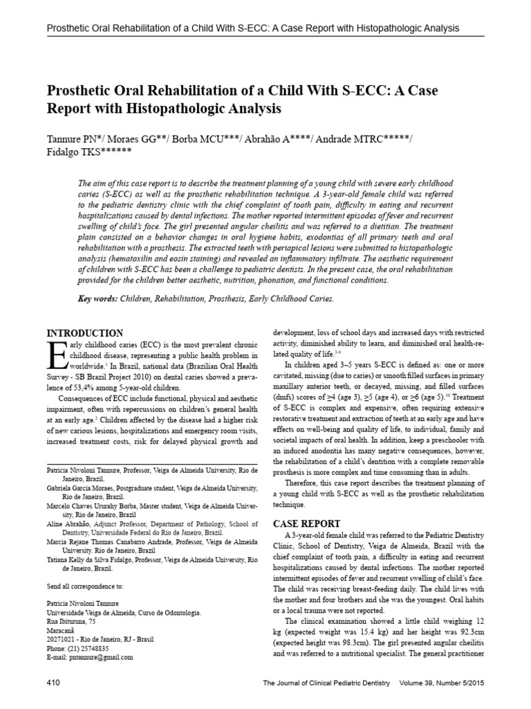 Prosthetic Oral Rehabilitation of a Child With S-ECC: A Case Report with Histopathologic Analysis
