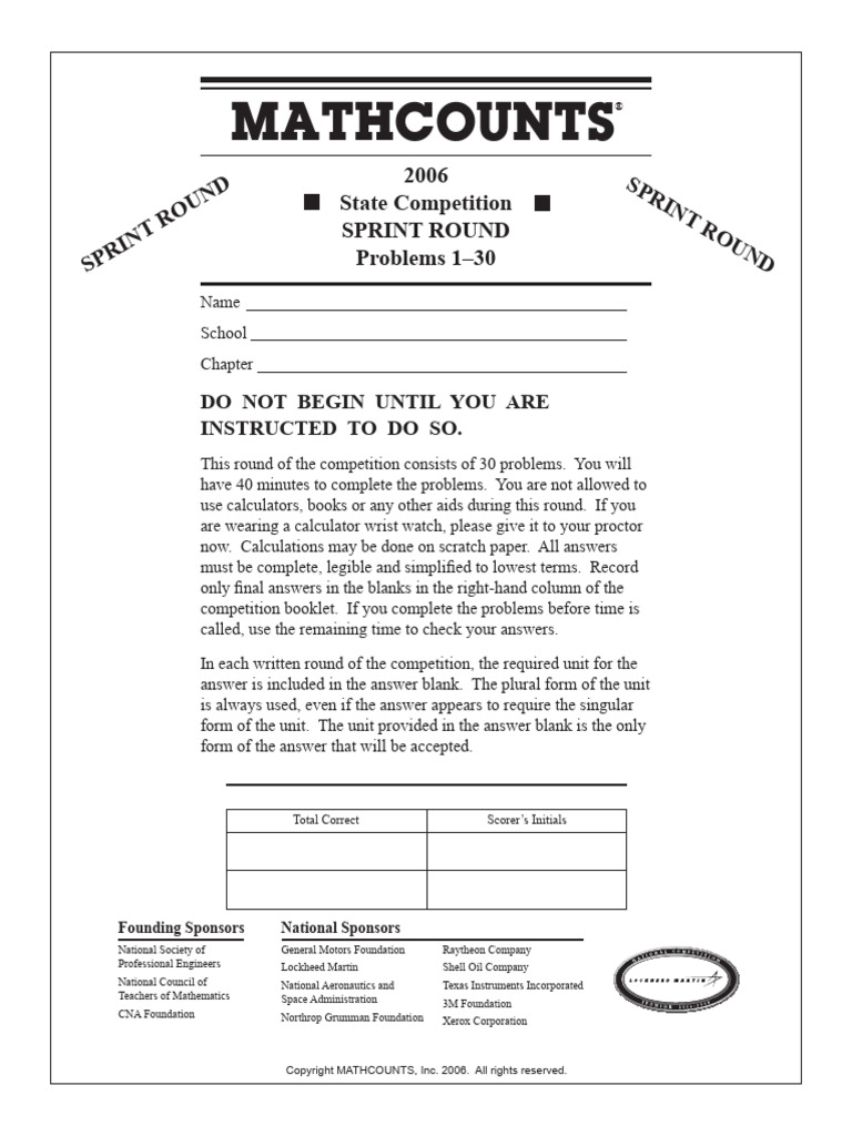 Copyright MATHCOUNTS, Inc. 2006. All rights reserved. 2006 State Sprint Round