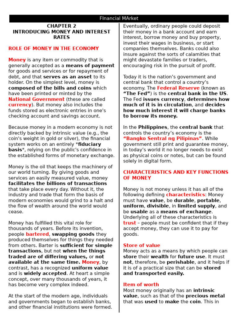 industry and trade that form the basis of following defining characteristics: Money