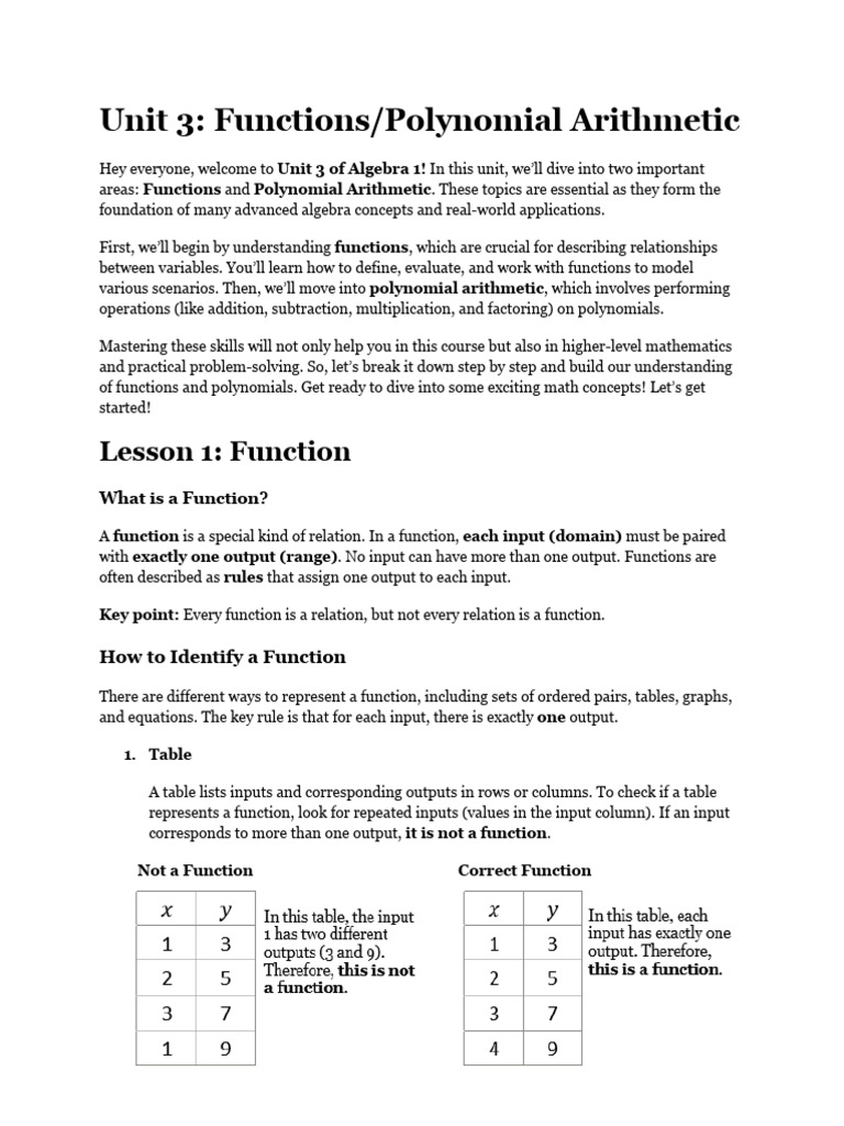 areas: Functions and Polynomial Arithmetic. These topics are essential as they form the