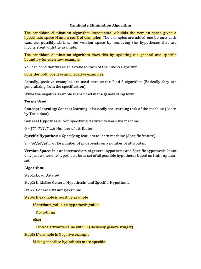 Version Space: It is an intermediate of general hypothesis and Specific hypothesis. It not