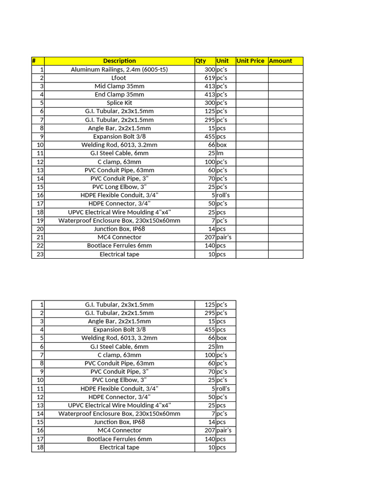 1 Aluminum Railings, 2.4m (6005-t5) 300 pc's